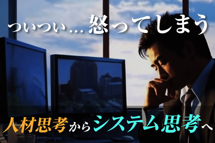 多くの経営者は人材思考を持っているため、ミスやトラブルが生じると「社員の能力が低いからだ」と考え、その社員を叱責することで問題を解決しようとしてしまいがちです。一方、システム思考の場合は原因を「仕組み」に見るため、ミスやトラブルの際も個人を責めるのではなく、システムを改善することで解決を図ります。
