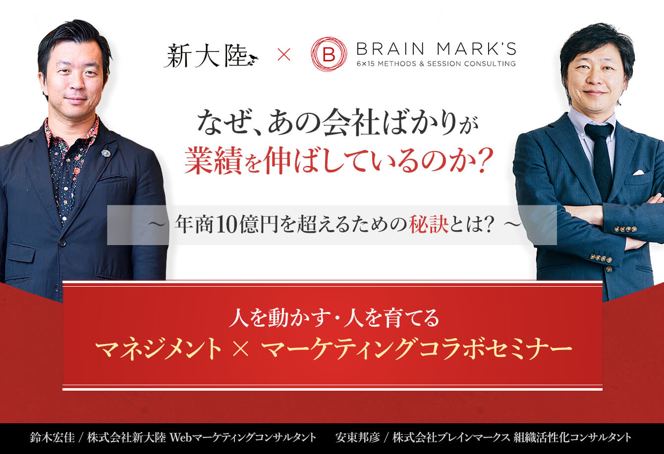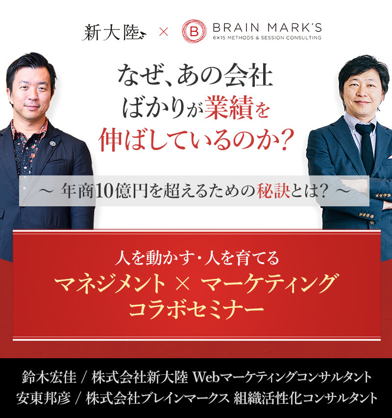 | 主 催 | 株式会社ブレインマークス http://www.brain-marks.com/ 株式会社新大陸 https://shintairiku.jp/ |