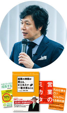 その独特のコンサルティング手法で、年間70講演を超える講演をこなす傍ら、経営塾、個別コンサルティングを行なっている。