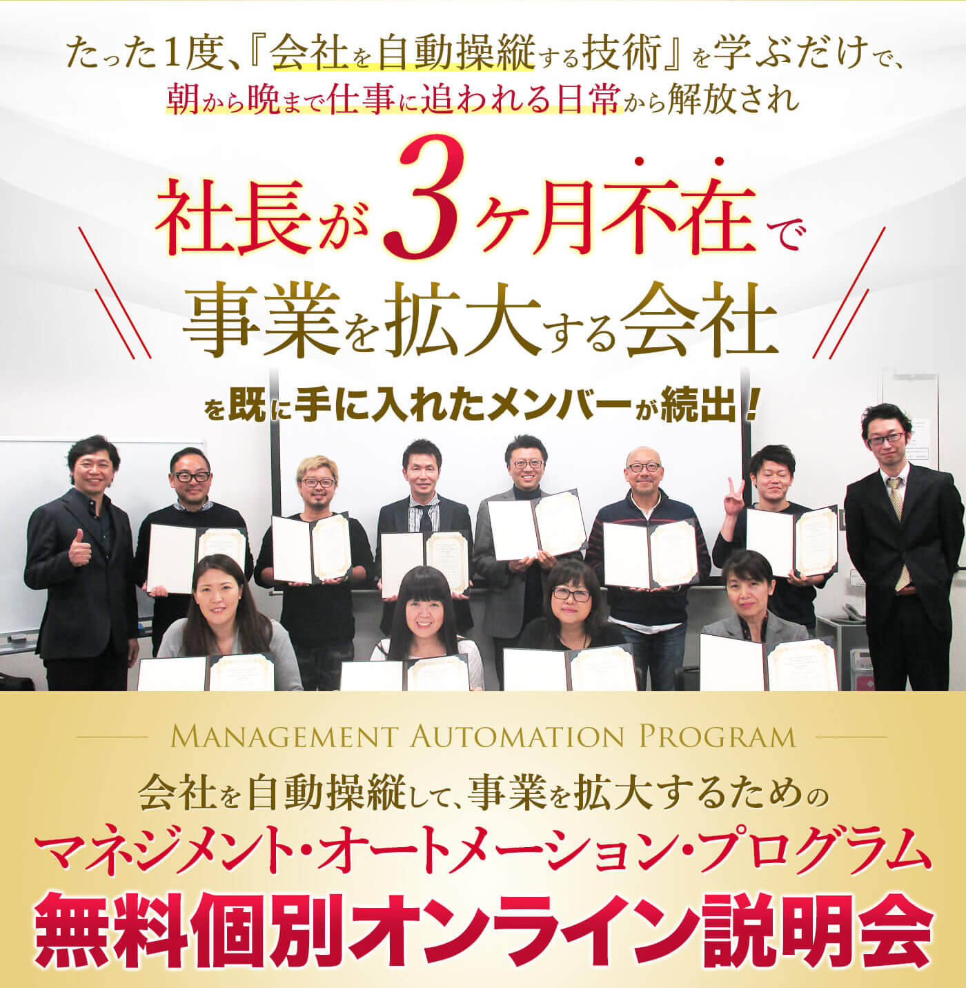 参加される皆さん、色んな想いを背負いながら、マネジメント・オートメーション・プログラムの扉を叩き、毎日真剣に取り組むことで、多くの成果を手に入れています。